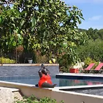 2-звездочный Les Jardins De Santa Giulia - Charmante Chambre D'Hote с патио и бассейном разместился в 1 км от пляжа Санта-Джулия. Отель привлекает гостей патио и садом, а также видом на сад.